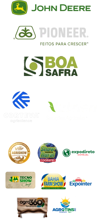 Presença contínua em eventos, campanhas e projetos de comunicação agro, com foco em consistência, alinhamento de imagem e impacto estratégico.